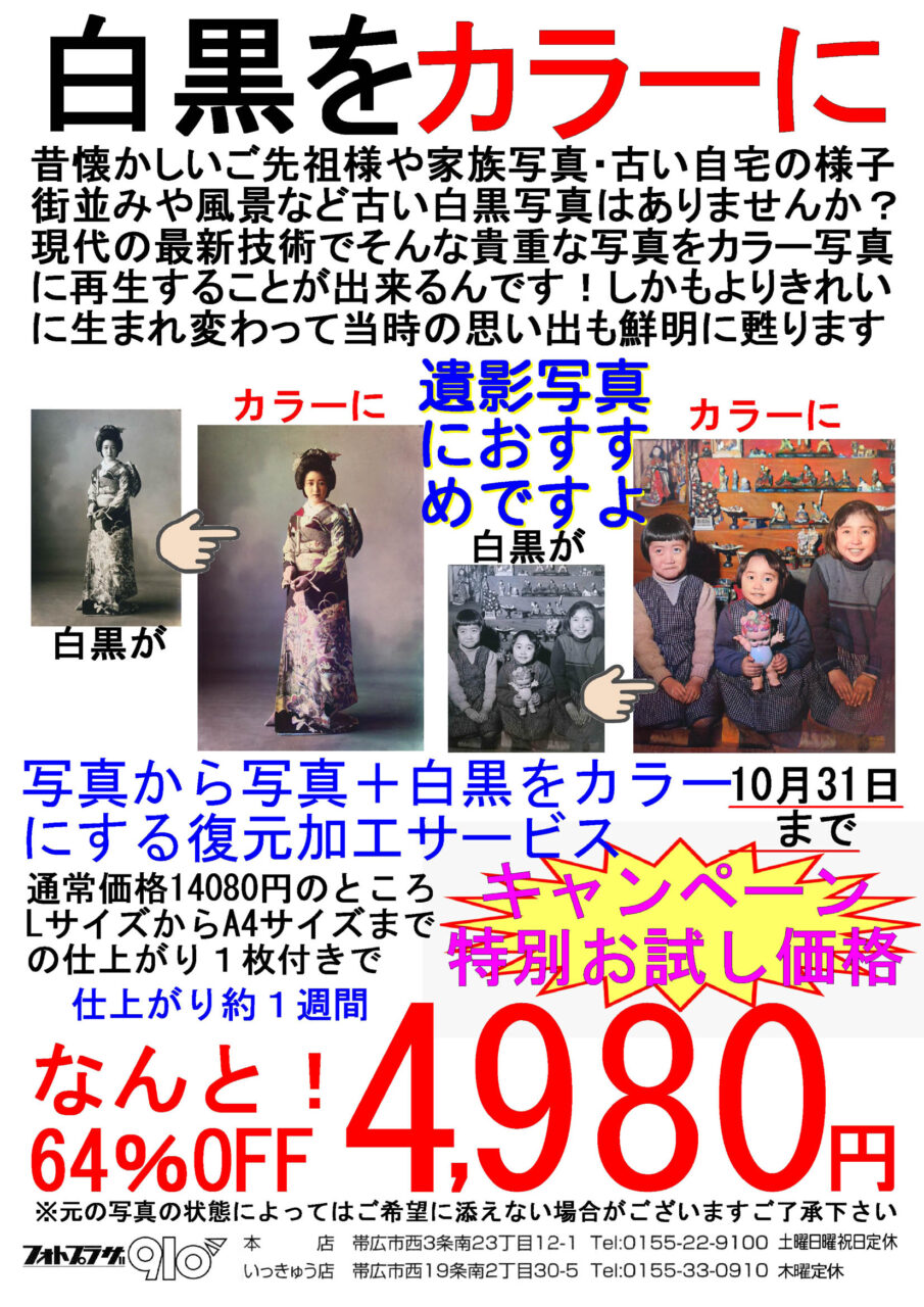 昔の白黒がカラー写真になりますよ!